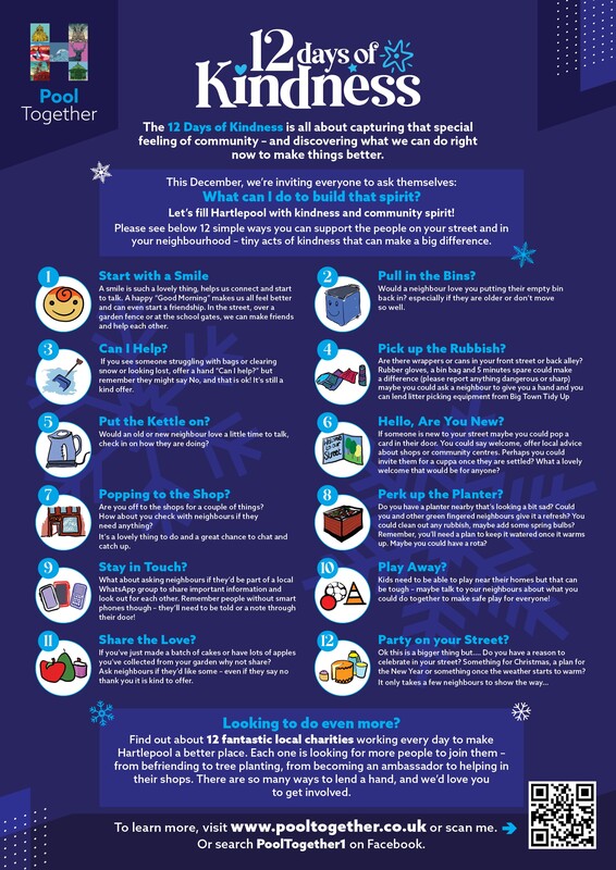 The 12 Days of Kindness will soon be launched - officially starting on the 12th of December you can already see the ideas, organisations and opportunities on the Pool Together website. www.pooltogether.co.uk