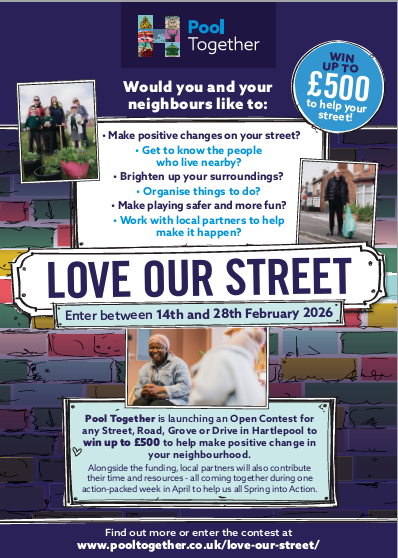 Please see details below and attached details about the 'Love our Street' contest which Pool Together are hosting.