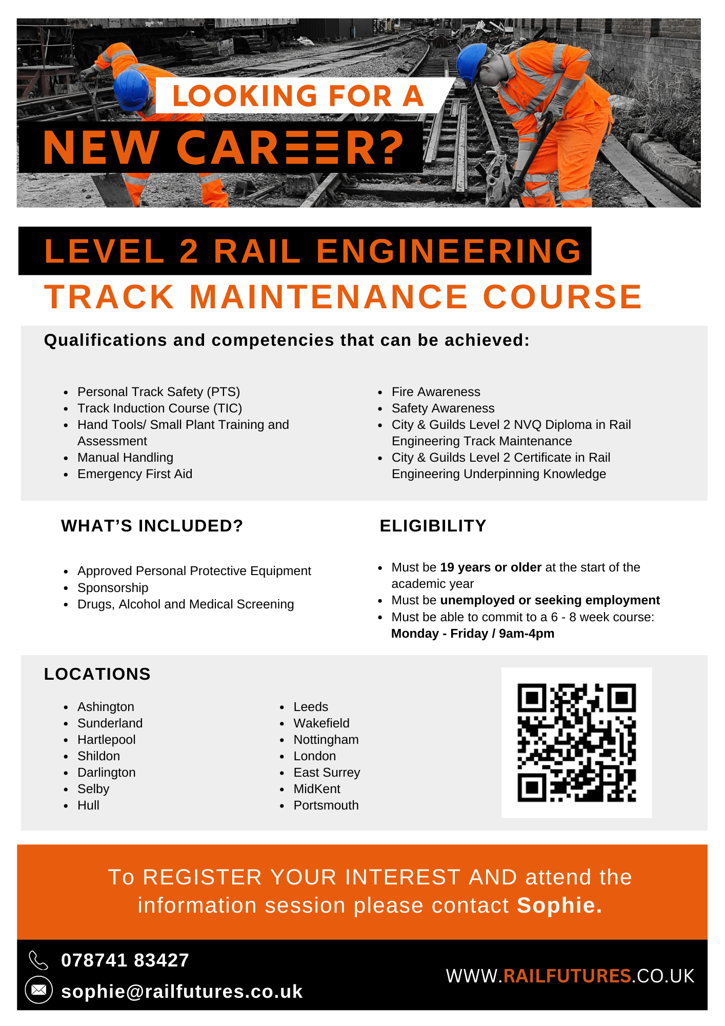 Rail Futures is dedicated to developing the next generation of skilled railway engineers. We work in partnership with colleges, employers, and industry professionals to deliver high-quality training programmes that combine technical knowledge with hands-on experience. Our goal is to raise standards across the sector while supporting learners to achieve meaningful qualifications and sustainable careers. If you’re considering a career in the railway industry, Rail Futures can help you take the first step. Our courses are designed to give you the skills, confidence, and industry connections you need to succeed. Come and talk to us today to find out how you can start building your future in rail.”